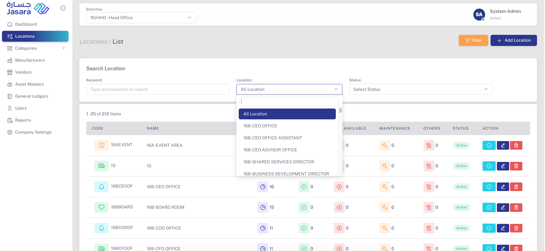 - ✏️ Edit to modify location name, code, or status