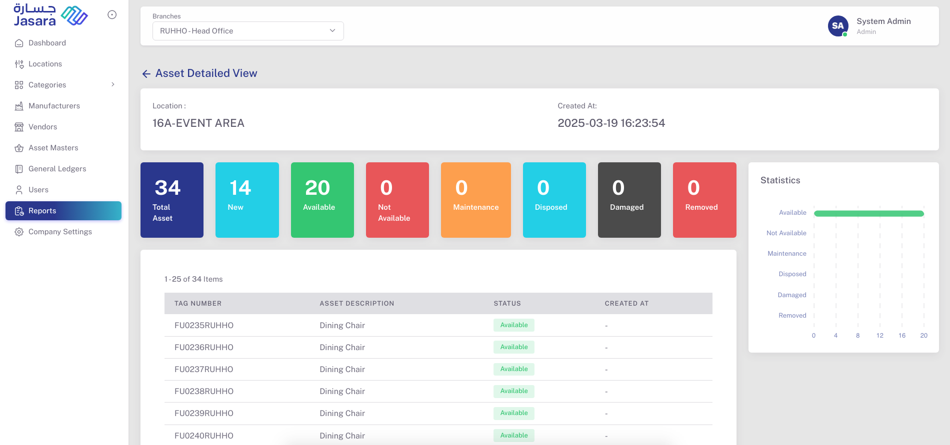- ✅ Asset status counts (Available, Not Available, Maintenance, Others)