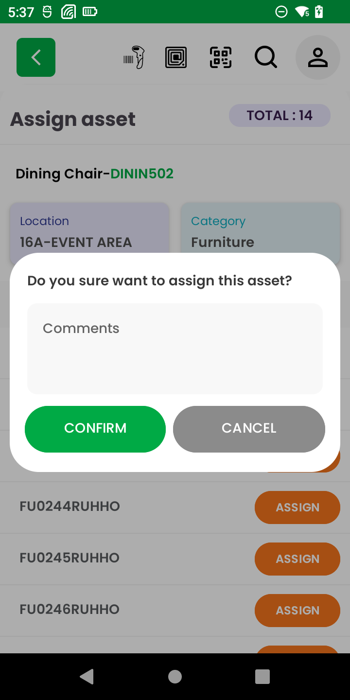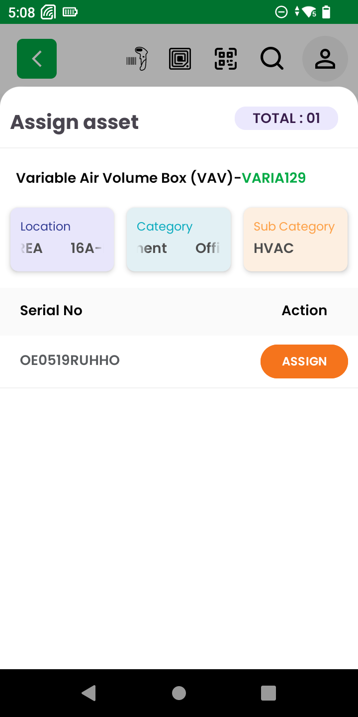 - Assign Asset Screen: