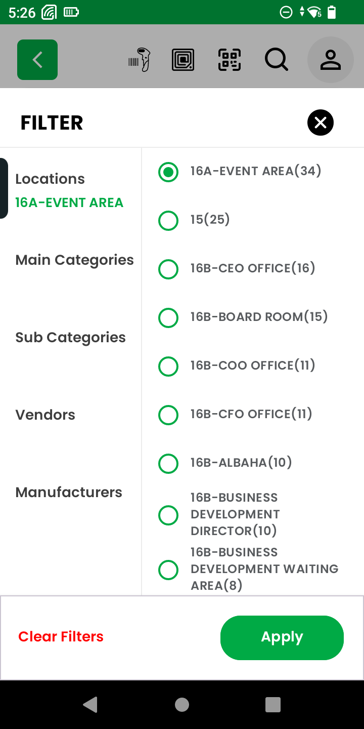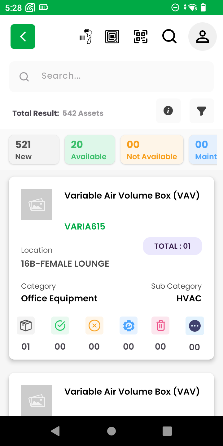 This structured inventory flow ensures users can effortlessly navigate, filter, and manage hospital or institutional assets directly from their mobile device.