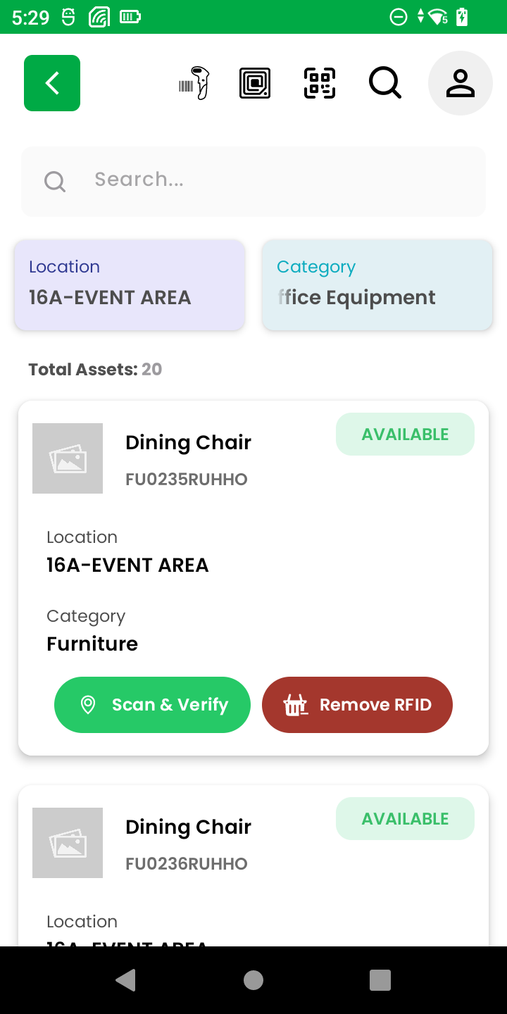 - Includes Scan & Verify and Remove RFID buttons for field verification or unassignment.